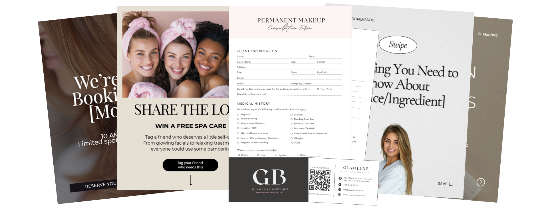 Each template is styled to match aesthetic clinics, nail artists, and beauty studios.